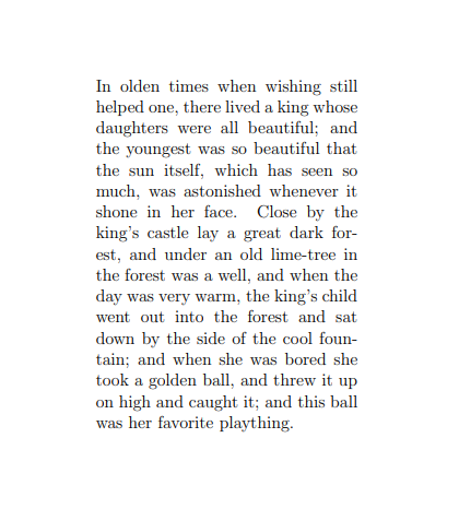 As a finishing touch, we can adjust the tracking so that letters in words are slightly closer together or furthter apart. As long as the adjustment is small enough, it does not become bothersome, but it does allow us to use spaces that are closer to their ideal length. For example, here is the same paragraph with the same width and the same line breaks, but the second version uses tracking adjustment to keep the spaces closer to their ideal width: